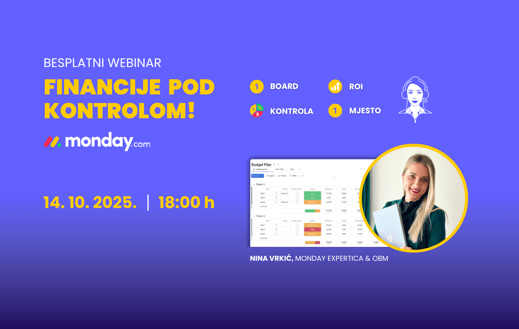 That’s why we’re inviting you to the free webinar “Finances Under Control in monday.com,” where Nina Vrkić, monday.com expert and OBM, will show you how a few simple automations can give you a real-time overview of all your income and expenses.